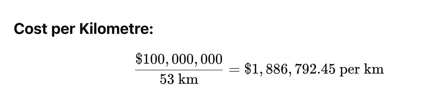 Looked at another way, what's the cost per kilometre if $100m buys 53 km of bike lanes?